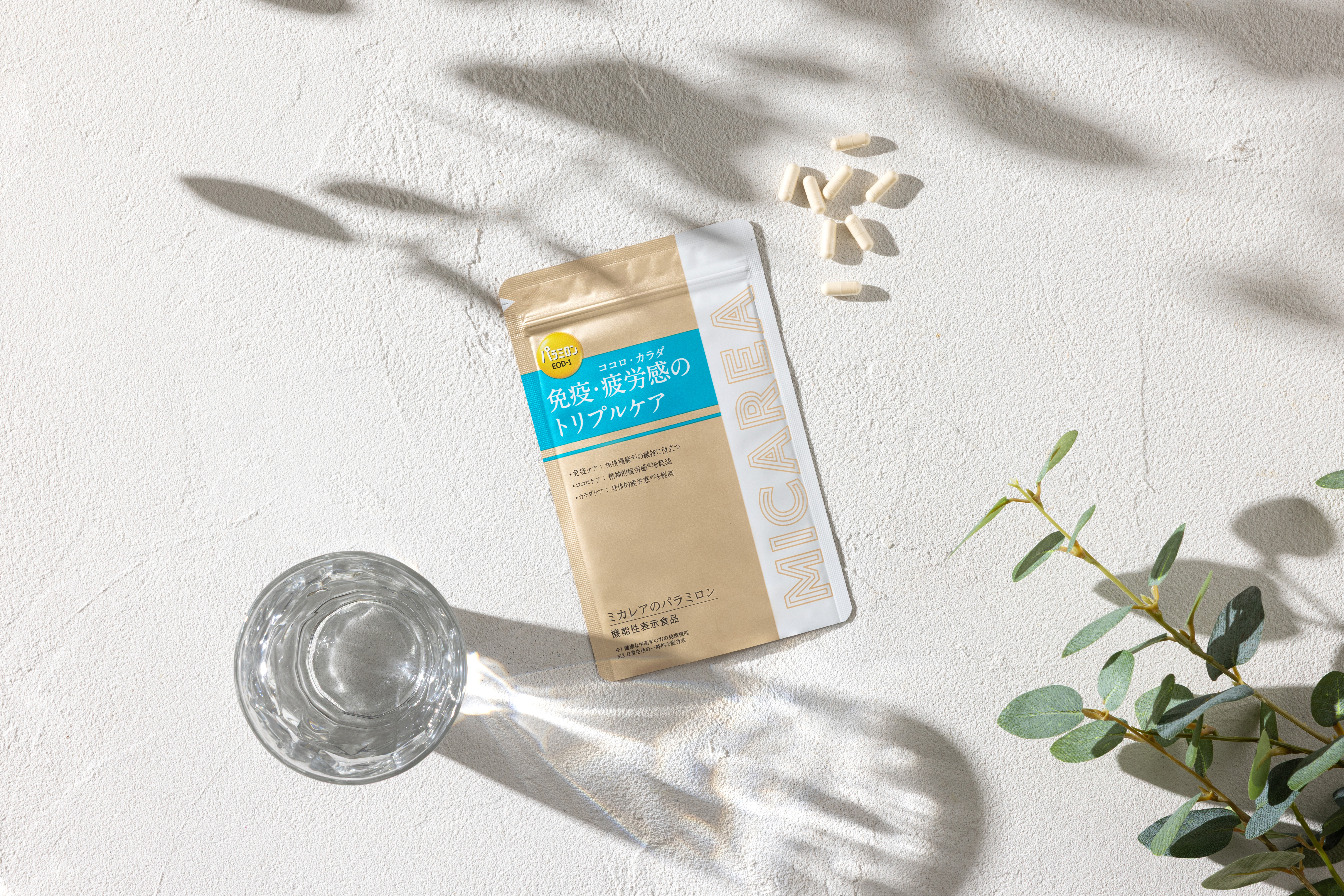 その後「ミカレアのパラミロン」は、パワーアップを続けていて「精神的・身体的疲労感※2 の軽減」に加え、「免疫機能※3 の維持に役立つ」ことが確認された「金のユーグレナ(EOD-1 株)」100%※4 の機能性表示食品なんです!